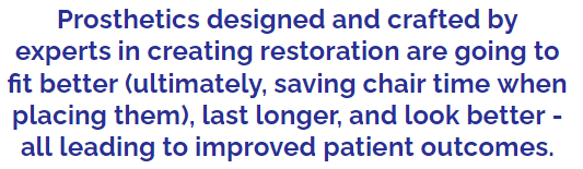- Outsourcing the fabrication of dental prosthetics to expert technicians saves dentists time and allows them to see more patients.