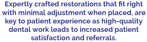 Within the office, there are many things that can be done but when it comes to restorations, one of the main benefits of working with a great dental lab is improved efficiency.